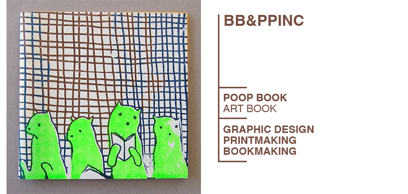 BB&PPINC (spoken Bee Bee and Pee Pink) makes books, prints and other cool stuff. Our focus is to document the glorious adventures of the great heroes, Baby Bear and Pezya, and their noble comrades. Co-creater Dasha Shishkin and I conceived of each book together. Dasha did the drawings and I assembled them, colored them and arranged them into the book. I designed and cut the linocuts based on Dasha's drawings and printed the covers on a letterpress.
